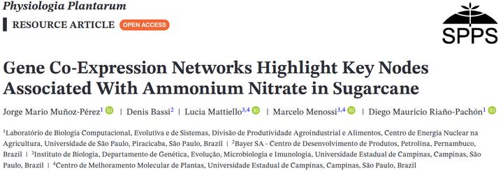 New paper: Gene Co-Expression Networks Highlight Key Nodes Associated With Ammonium Nitrate in Sugarcane - Collaboration with UNICAMP